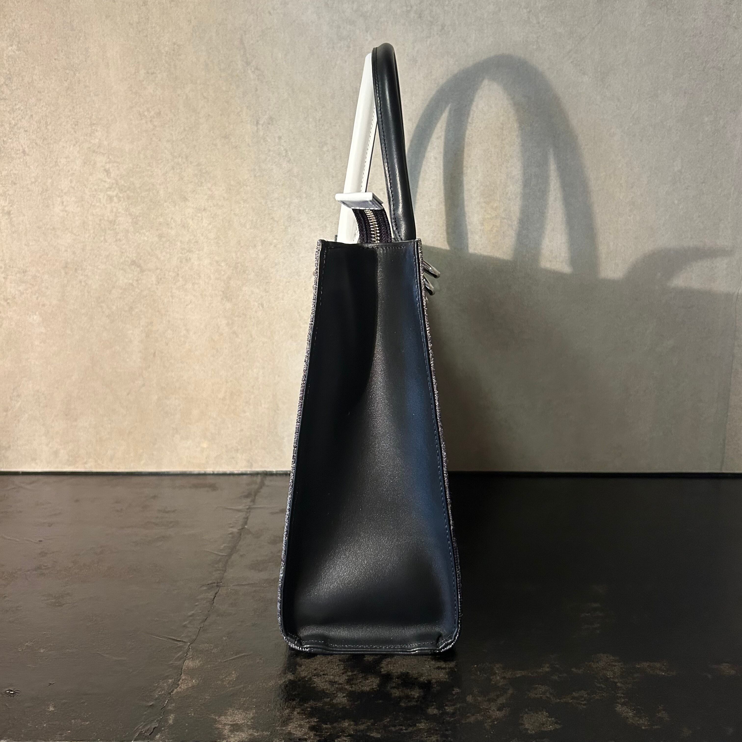 取手部分とマチの横部分には、それぞれ白と黒のツートーンカラーを採用し、個性かつ洗練されたデザインに。