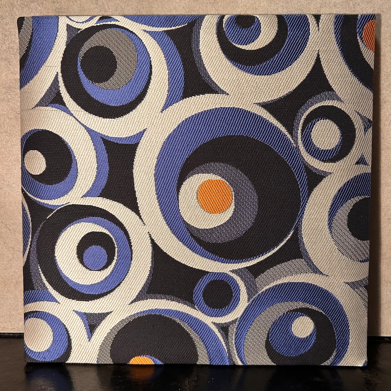 青、白、黒を基調とした円が重なり、リズムさを感じさせるデザイン。