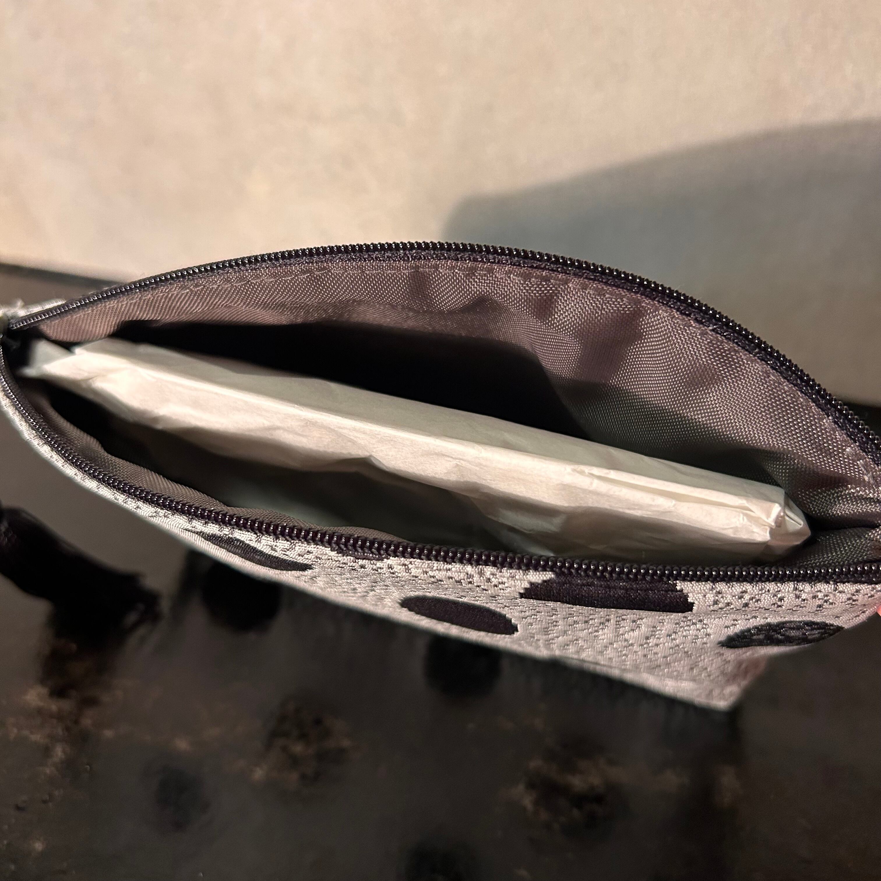 やや広めのマチで収納力もあり、リップやハンドクリーム、小物類がしっかり入ります。