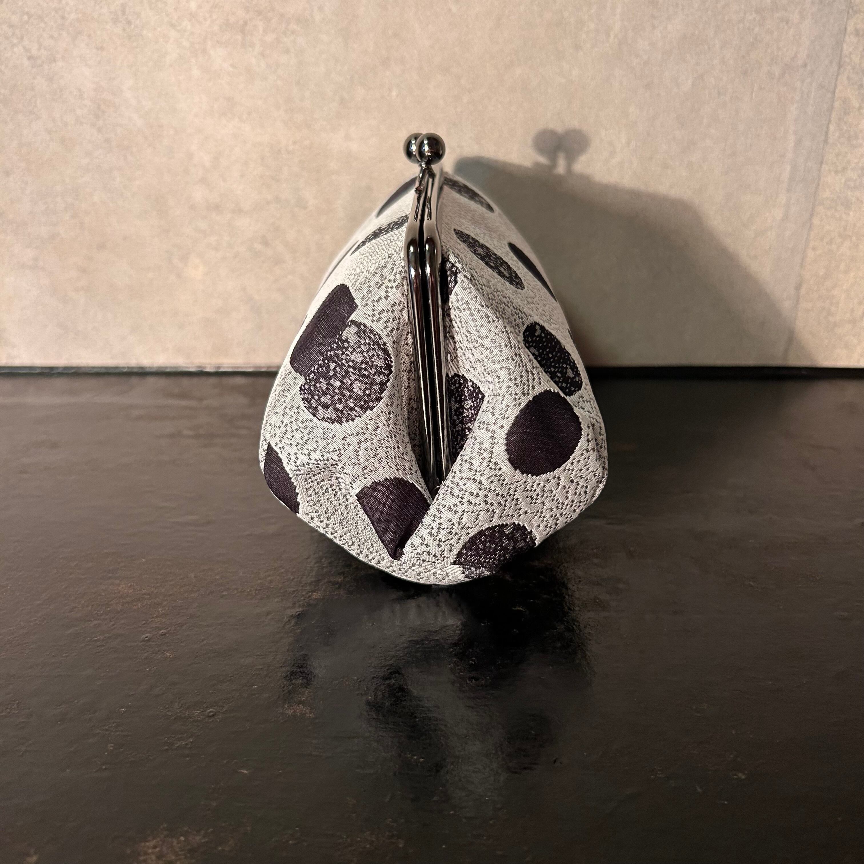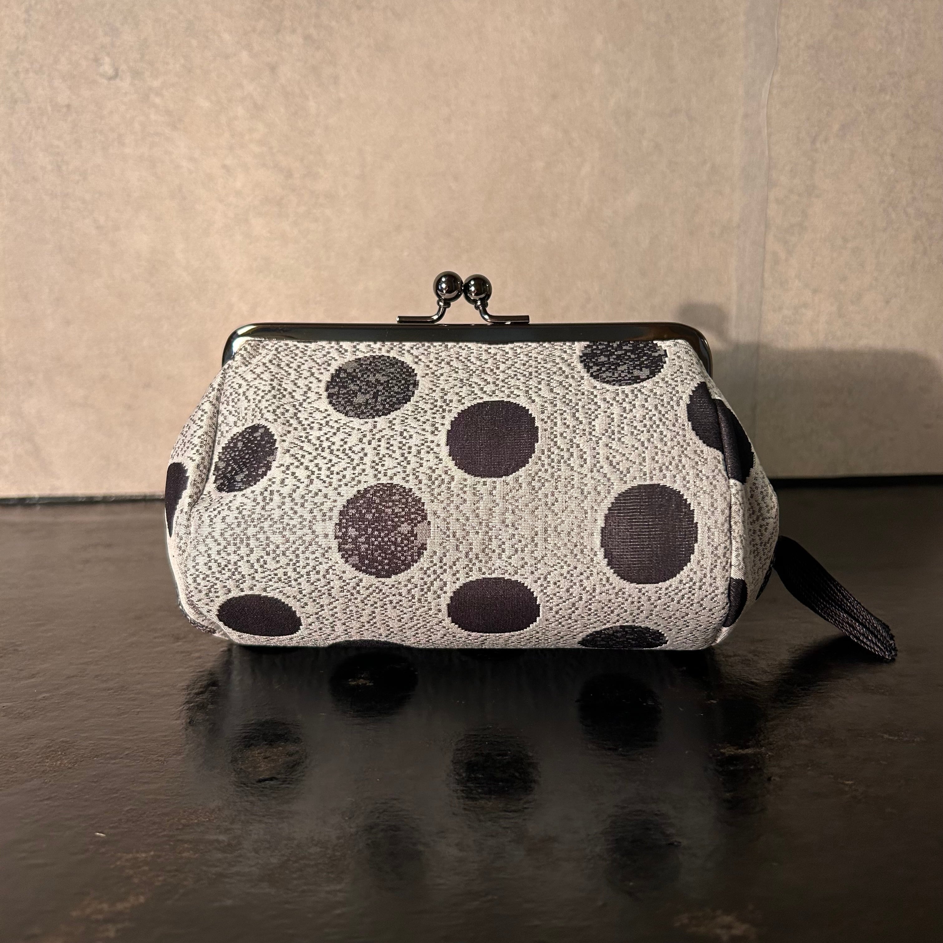 モノクロの水玉模様と、がま口ならではのレトロ感が絶妙にマッチ。