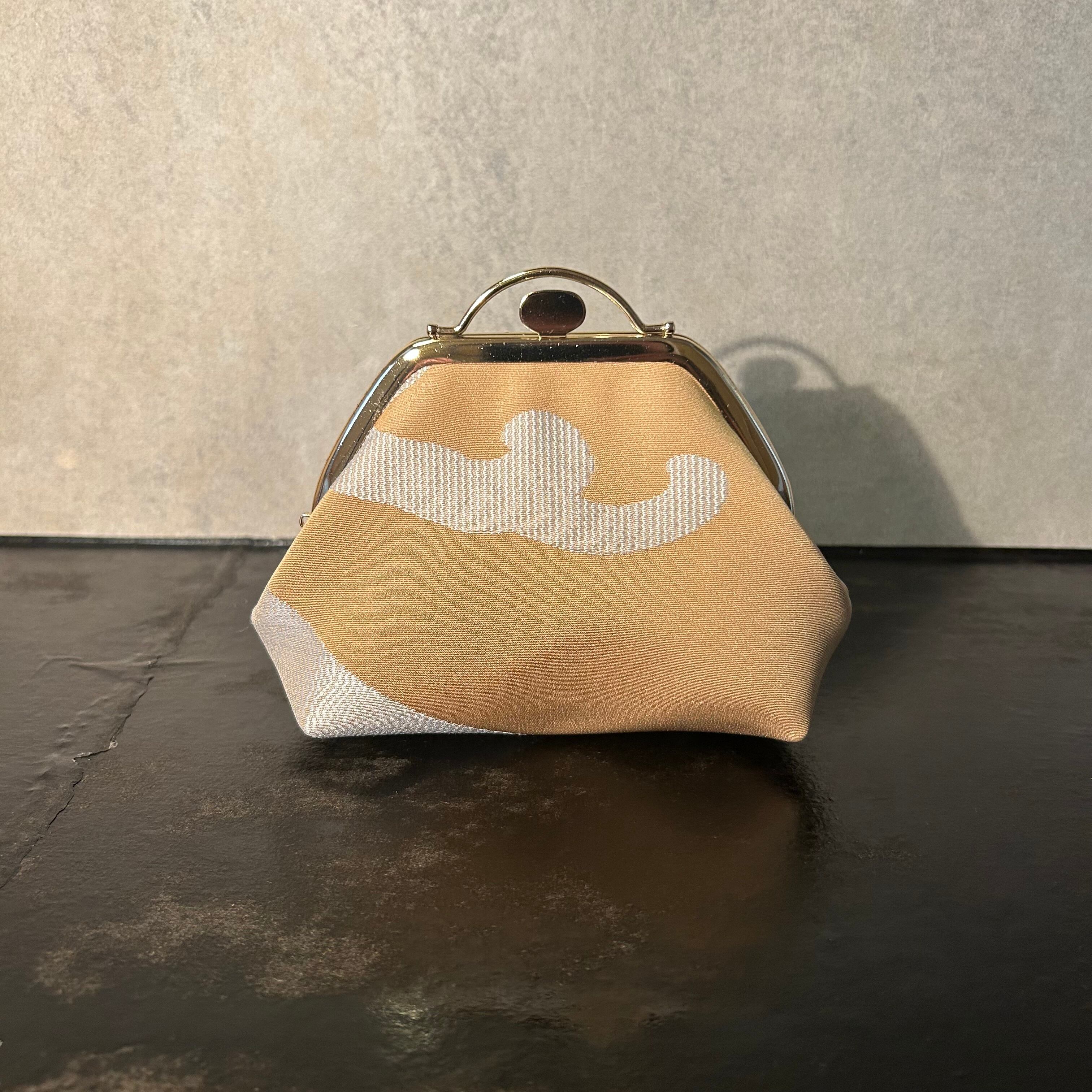安治郎 お召 がま口ポーチ ゴールド×イエロー