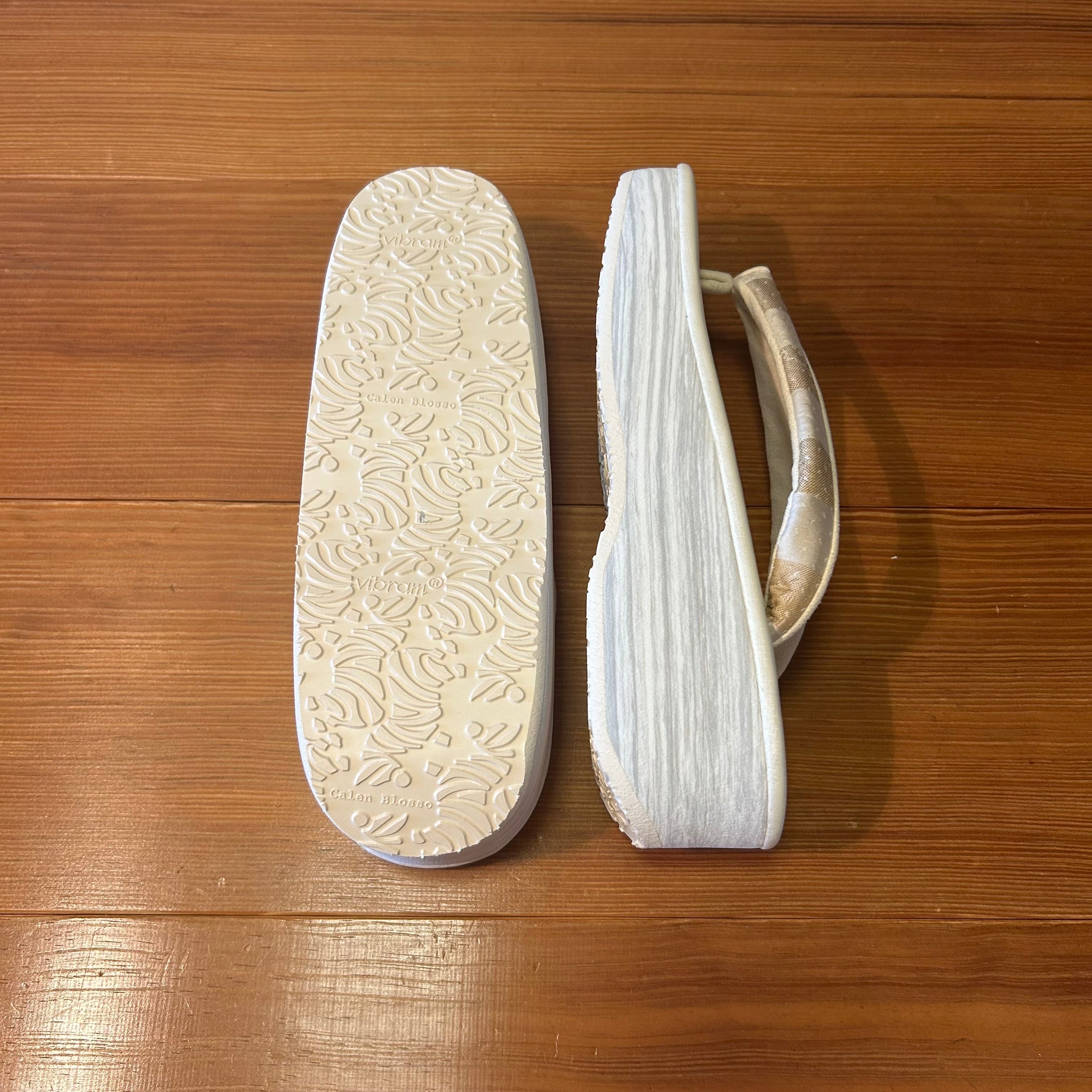 白を基調とした上品なデザインで、どんなお着物にも合わせやすい一足です。