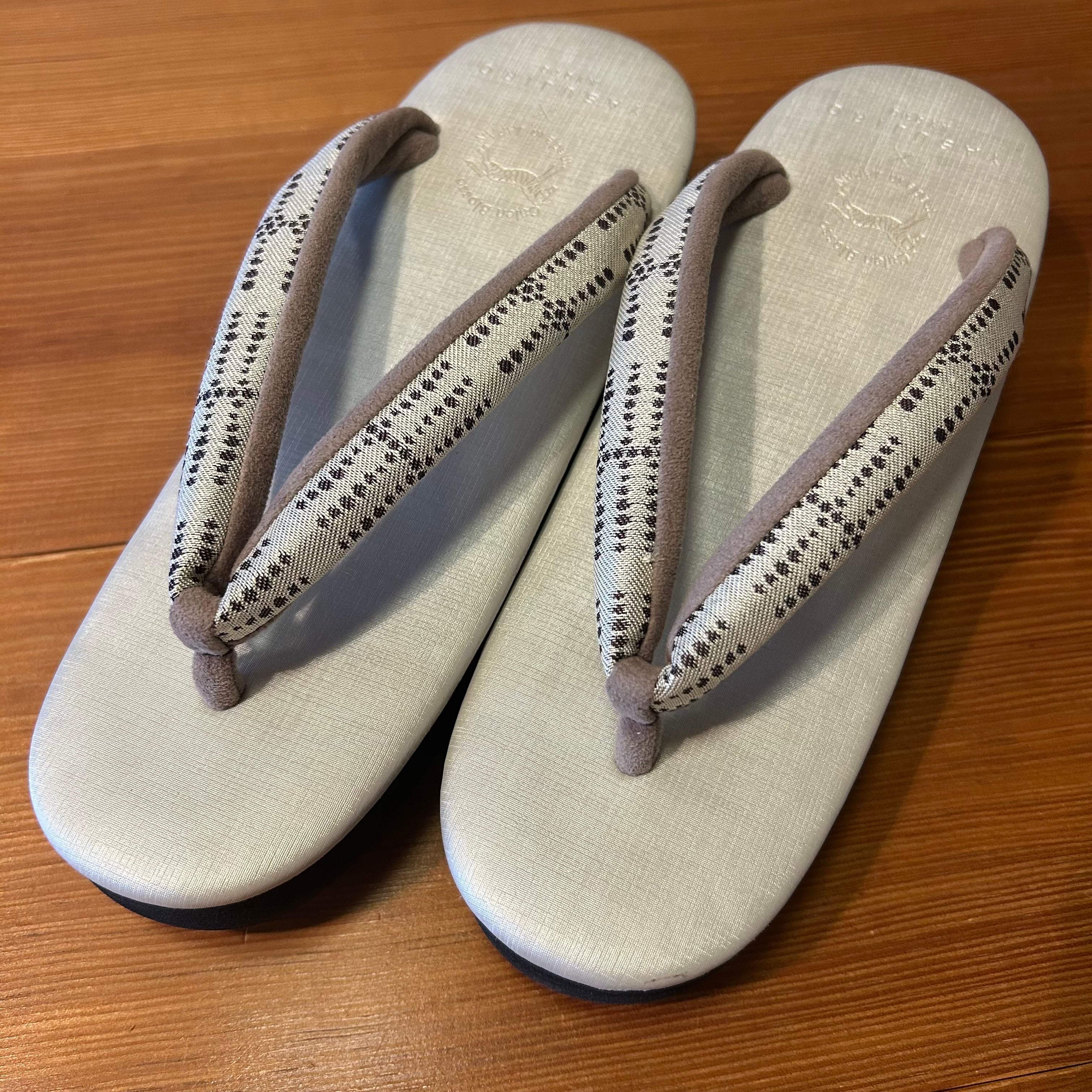 鼻緒の部分には、安治郎オリジナルのお召生地を贅沢に使用。