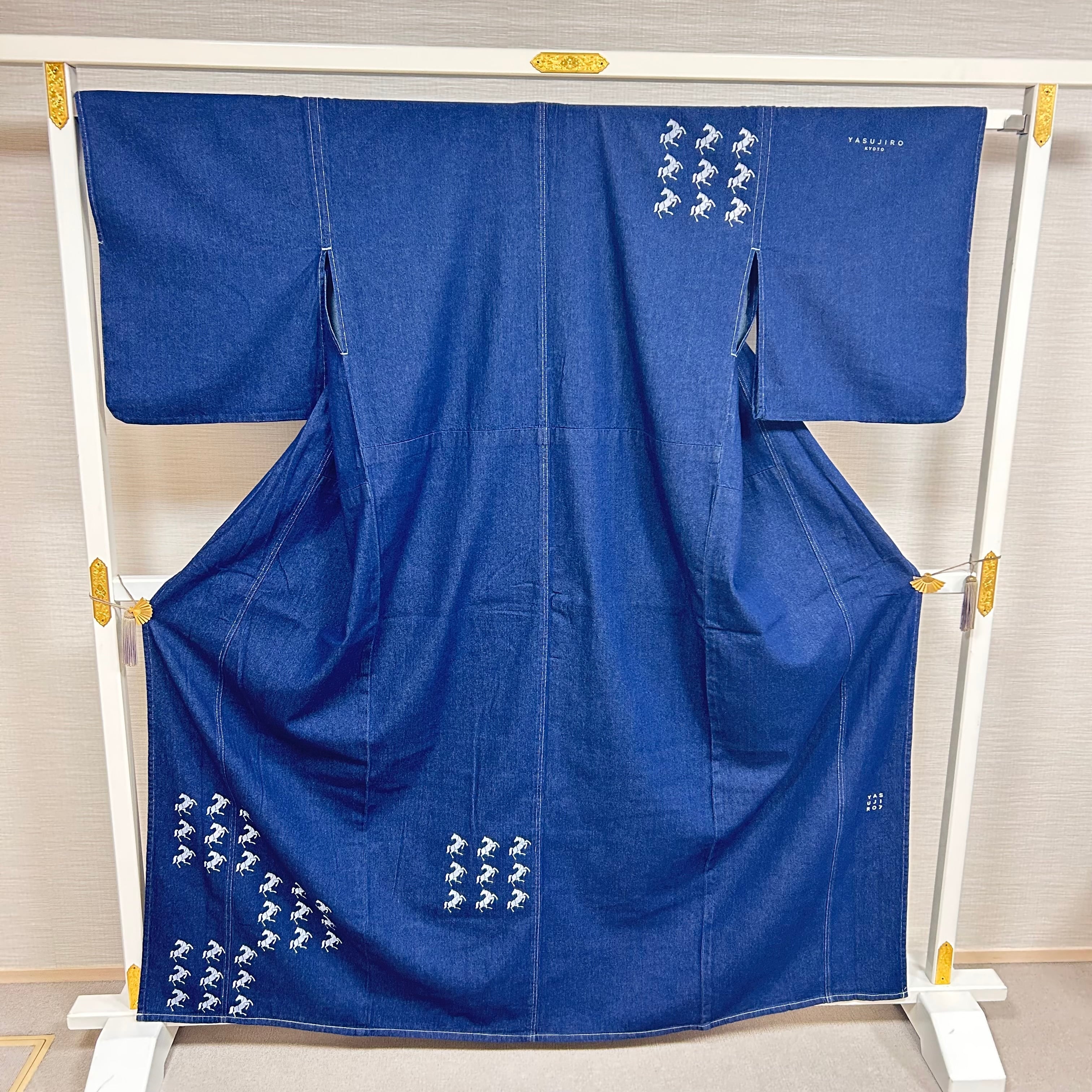 Demimきもの Innocent by yasujiro オリジナル手染め加工 馬シリーズ ブルーノーマル レディース